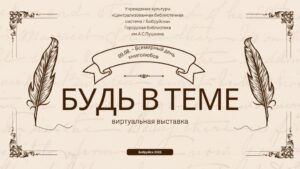 Виртуальная выставка “Будь в теме”, посвященная Всемирному дню книголюбов. Представляем вашему вниманию книги разных жанров и эпох, знакомим с интересными фактами о книгах и чтении, и конечно же, вдохновляем на новые литературный приключения. |