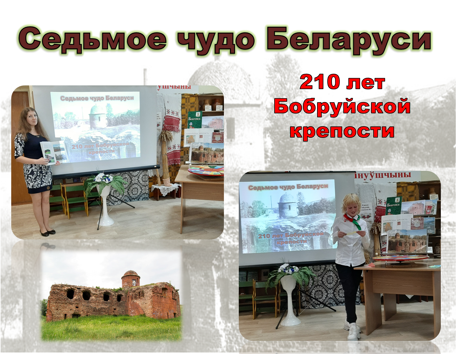 На историческом калейдоскопе «Седьмое чудо Беларуси» ребята из 6 «Б» класса ГУО «Средняя школа №9 г. Бобруйска» узнали много познавательного и интересного из истории крепости. Ознакомились с биографиями архитекторов Бобруйской крепости Т. Е. Нарбута и К.И.Оппермана, узнали, почему именно в «городе на Березине» было решено построить уникальное произведение оборонительной архитектуры первой половины 19 века. Библиотекарь также продемонстрировала школьникам БД «Бобруйская крепость», размещённую на сайте УК «ЦБС г. Бобруйска» и рассказала о загадках, которые таит в себе Бобруйская крепость. Очень хорошие знания ученики показали в викторине «Цитадель над Березиной».