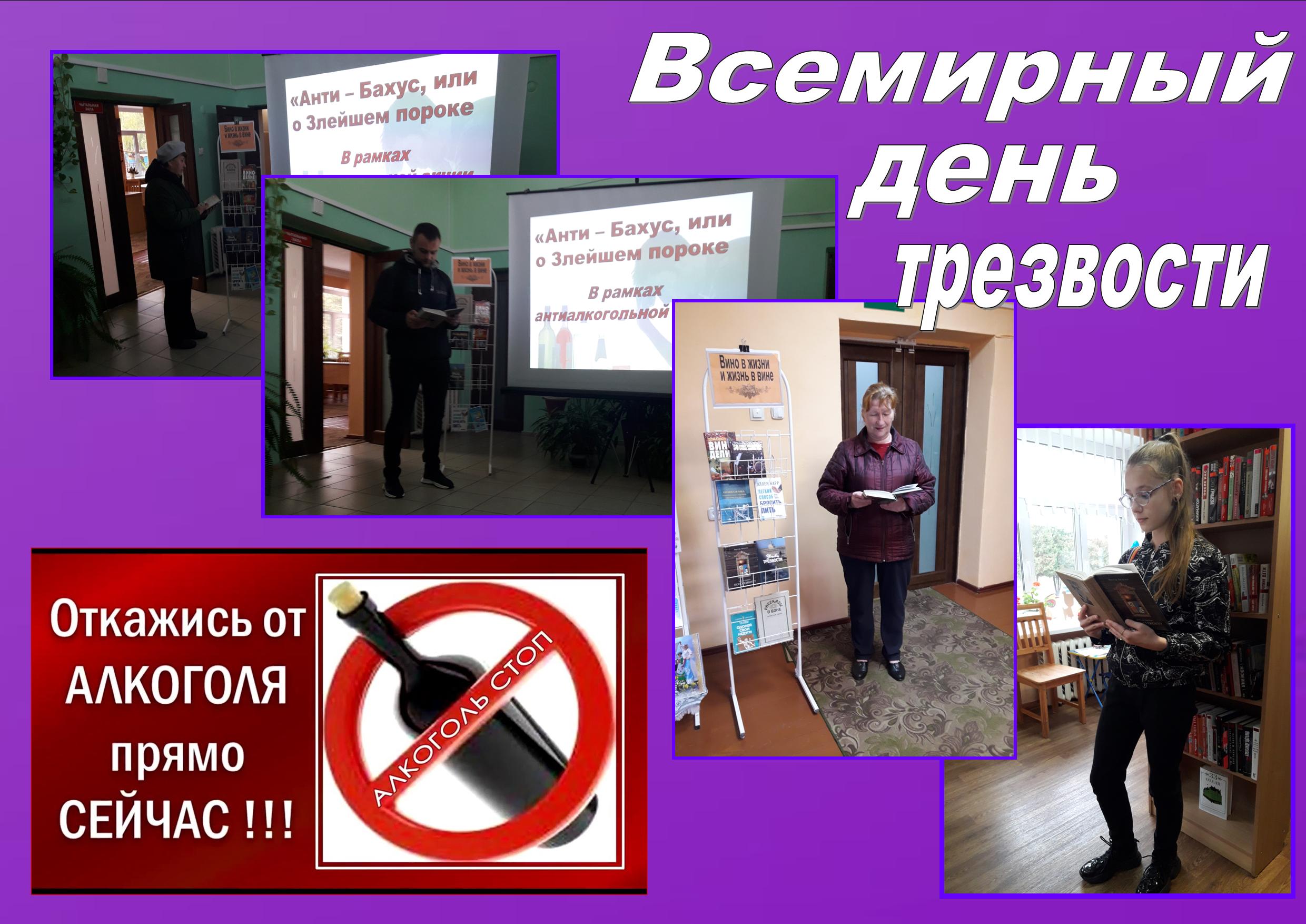 Всемирный день трезвости, празднуемый 3 октября, является международным праздником. Во многих странах мира употребление алкоголя приблизилось или перешагнуло опасную черту, ведущую к вымиранию нации. Развито и считается нормой употребление различных спиртных и горячительных напитков, алкоголь введен в национальные традиции и религиозные обряды. Как результат появления традиций «распивания на праздники» и «культурного пития» (понемногу) значительно повысилось количество людей, страдающих алкогольной зависимостью. Изменить создавшееся общественное мнение, донести людям информацию о разрушительных последствиях употребления даже небольших доз алкоголя призван всемирный день трезвости.