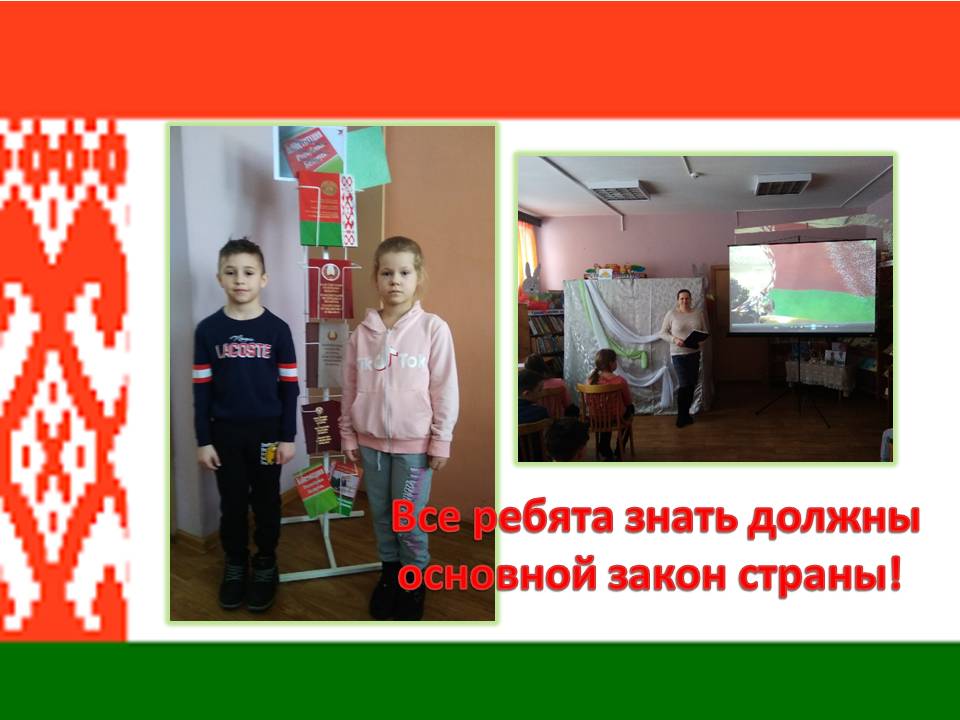 13 марта сотрудники городской библиотеки №4 им. Б.М.Микулича провели урок правовых знаний «Все ребята знать должны основной закон страны» для ребят 3-х классов ГУО «Средняя школа №31 г. Бобруйска».