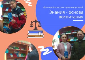 Библиотекарь рассказала подросткам о правовой ответственности несовершеннолетних. Ребята узнали об изменениях Кодекса об административных правонарушениях Республики Беларусь, касающихся административной ответственности несовершеннолетних. Для просмотра был представлен социальный видеоролик «Выбери правильный путь», подбор тематических материалов: книг, брошюр, буклетов о правах и ответственности несовершеннолетних. Участники мероприятия получили буклеты «Знать и не нарушать».