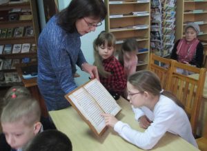В городской библиотеке № 8 имени Евфросинии Полоцкой для учеников начальных классов весеннего школьного оздоровительного лагеря ГУО «Средняя школа № 18 г. Бобруйска» прошло историческое путешествие «Светочи земли белорусской!», приуроченное к Году исторической памяти. Ребята познакомились с двумя выдающимися личностями белорусской истории – Евфросиньей Полоцкой и Франциском Скориной. Вначале мероприятия дети послушали рассказ о том, что такое рукописная книга, как она создавалась, узнали о том, что Евфросиния Полоцкая была первой женщиной в Беларуси, которая стала заниматься переписыванием книг. Во второй части мероприятия дети познакомились с белорусским первопечатником Франциском Скориной и его «Библией». В завершение мероприятия ребята попробовали писать гусиным пером, сложили пазл «Скорина», а также полистали факсимильное издание «Житие преподобной Евфросинии» и несколько томов из 20-ти томного факсимильного издания «Книжное наследие Франциска Скорины».