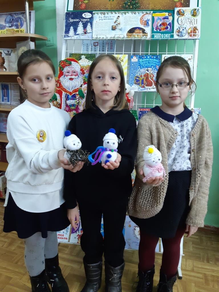 На очередном занятии библиотечного проекта “Hand –Made» под руководством А.В. Пракапович, ребята мастерили забавных снеговичков, используя для поделок необычные материалы: белые носочки, бусины, яркие ленточки и мишуру. В результате получились замечательные новогодние игрушки, которые можно подарить друзьям, или украсить ёлку.