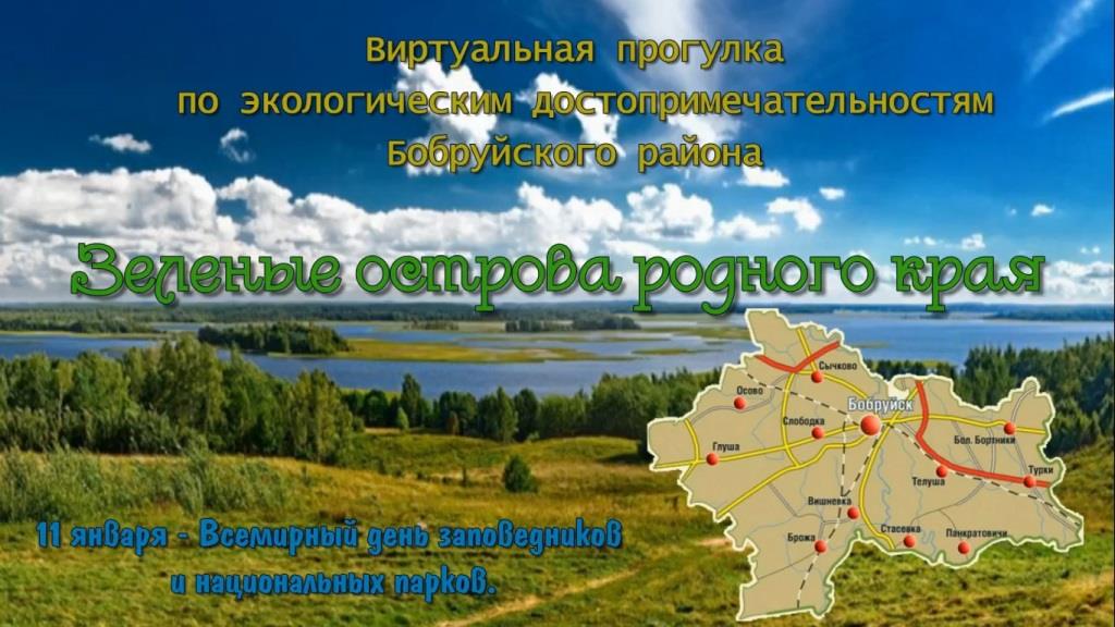 Городская библиотека им. А.С. Пушкина подготовила виртуальную прогулку по экологическим достопримечательностям «Зеленые острова родного края», которая познакомила с охраняемыми территориями, которые расположены в Бобруйском районе.