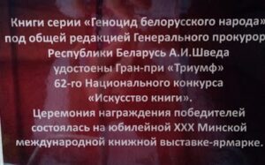 В целях патриотического воспитания молодежи для учащихся старших классов средних школ г.Бобруйска в кинотеатре «Товарищ» в рамках программы киноурока «Это не должно повториться», посвященного геноциду белорусского народа в период Великой Отечественной войны и послевоенное время, библиотеки УК «ЦБС г.Бобруйска» представили библиотечную экспозицию «У времени есть своя память». Основой экспозиции явились книги серии «Геноцид белорусского народа» под общей редакцией Генерального прокурора Республики Беларусь А.И.Шведа, которые были удостоены Гран-при «Триумф» 62-го Национального конкурса «Искусство книги». Также были представлены материалы о концентрационных лагерях на территории республики, отдельно были экспонированы материалы о детях, перенесших ужасы и лишения в годы самой страшной и жестокой войны. Особый акцент был сделан на материалах о нашем городе Бобруйске в то военное лихолетье.
