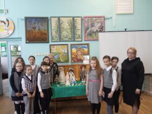 В центральной детской библиотеке им. А.П. Гайдара совместно с отделом традиционного искусства и ремёсел ГУК «Дворец искусств г. Бобруйска» в рамках цикла мероприятий «Мир твоих увлечений» для учащихся 4 «А» класса ГУО «Средняя школа № 2 г. Бобруйска» был проведён урок мастерства «Загадочный мир кукол». В ходе показа презентации «История кукол» дети совершили экскурс в историю создания кукол с древних времён и до нашего времени.