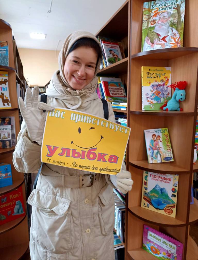 Этот оригинальный праздник появился в 1973 году. Задуман он как попытка обратить внимание человечества на необходимость сохранять мир. Это прекрасный повод для дружеских приветствий, радостных эмоций и хорошего настроения! В ходе мероприятия для посетителей библиотеки был показан библиотечный видеосюжет «И снова здравствуйте» с использованием отрывков из кинофильмов и мультфильмов: «Формула любви», «Варвара – краса, длинная коса», «Иван Васильевич меняет профессию», «Трям! Здравствуйте», «Привет мартышке» и многое другое. Читатели смогли вспомнить простые и дружелюбные, смешные и креативные приветствия из любимых фильмов. Этой акцией работники библиотеки попытались внести добро, свет, теплоту и поделиться своим хорошим настроением. Всех входящих в библиотеку посетителей ждал плакат-обращение «Вас приветствует улыбка».