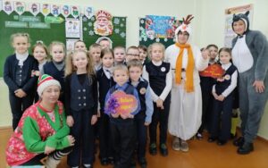 Ребята стали участниками развлекательной программы,  которую представили для них персонажи зимнего сказочного леса: Гном, Снеговик и Волк. Литературные герои увлекли младших школьников не только своими яркими образами, но и интересными конкурсами, забавными  играми и новогодними викторинами. Книжная выставка «В Новый год за сказкой» стала хорошим дополнением для знакомства с удивительными новогодними книжками.