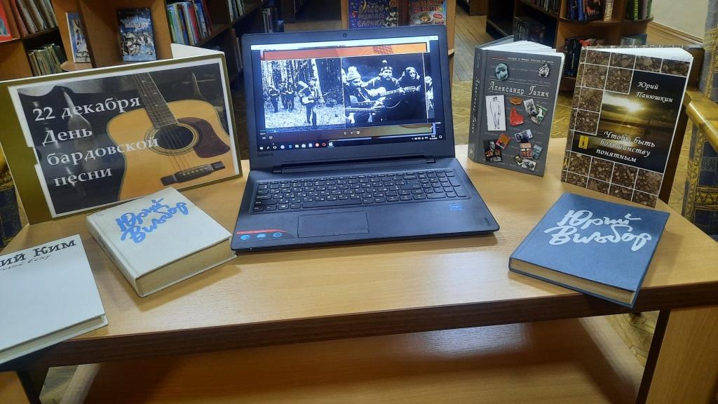 К Международному дню бардовской песни в городской библиотеке им. А.С.Пушкина состоялся поэтический видео час «Дым, костёр и песня, юность и любовь», в котором была отражена история создания и развития праздника. Такие признанные мастера, как Булат Окуджава, Юрий Визбор, Юлий Ким, Олег Митяев, Сергей и Татьяна Никитины, помогли читателям окунуться в многогранный мир бардовской песни. Каждый из них внес свой неповторимый штрих в общую картину авторской песни, которая всегда будет в народе признанной и любимой. Ведь авторские песни всегда глубоко трогательны, естественны и душевны. Прекрасным дополнением к мероприятию стал буклет «Настроение нашей души» со специальной подборкой литературы о бардах и авторской песне.