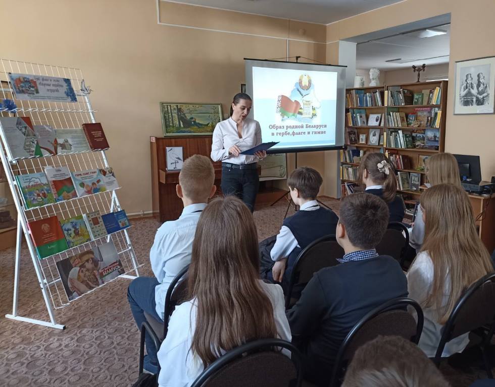 Три главных символа белорусского государства — флаг, герб и гимн олицетворяют собою суверенитет нашей страны, её национальное единство и независимость. Это важнейшие символы нации, которые свято должен чтить и которыми должен гордиться каждый белорус. 16 мая в городской библиотеке имени А.С.Пушкина прошёл час информирования «Образ родной Беларуси в гербе, флаге и гимне» для учащихся 6 классов ГУО «Гимназия №3 г.Бобруйска имени митрополита Филарета (Вахромеева)». Ребята познакомились с историей возникновения символов нашего государства – герба, флага, гимна, узнали о главных культурных и духовных ценностях, которые в них отражены, а также о значении их в жизни  каждого человека и страны в целом. Для закрепления полученных знаний учащиеся ответили на вопросы викторины «Знаешь ли ты государственную символику своей страны?». Завершающим аккордом мероприятия стали напутственные слова ведущей о том, что государственные символы  объединяют нацию, соединяют в единое целое её прошлое, настоящее и будущее и всем нам необходимо знать, беречь и гордиться ими.