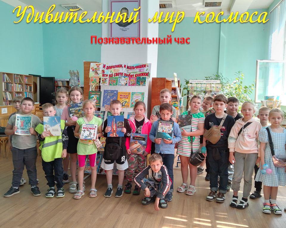 В центральной детской библиотеке им. А.П.Гайдара для ребят из летнего школьного лагеря ГУО «Средняя школа № 18 г. Бобруйска» был проведён познавательный час «Удивительный мир космоса». Вниманию школьников была представлена презентация «Покорение космоса», видео «Красота Вселенной», «Звуки из космоса». Далее ребята совершили исторический экскурс «Космическая азбука», узнали много интересного о Солнечной системе, с чего началось изучение космического пространства, кто стоял у его истоков, кто первым побывал в открытом космосе. Вспомнили первую белорусскую женщину-космонавта Марину Василевскую, полёт которой состоялся в марте этого года. Завершилось мероприятие традиционным знакомством с книгами, посвящёнными космосу и космонавтике из фонда библиотеки.