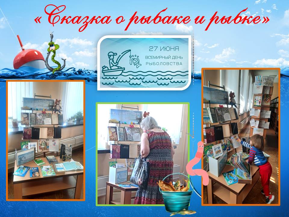 Рыбалка с древних времен была не только способом пропитания, но и приятным хобби, доставляющим удовольствие. Она развивает наблюдательность, выносливость, выдержку и смелость. В библиотеке состоялся день – посвящение «Сказка о рыбаке и рыбке», приуроченный к Всемирному дню рыболовства. Выставка-аквариум «На литературной волне» познакомила наших пользователей с художественными произведениями, где встречаются сюжеты о рыбаках и рыбалке. Воспевали рыбную ловлю в своих произведениях и белорусские писатели. Одну из самых мистических картин рыбной ловли создал Ян Барщевский в рассказе «Рыбак Родзька». В поэме Я.Коласа «Новая зямля» также есть красочные отрывки на тему рыбалки. О рыбацких впечатлениях писатель А.Федоренко рассказывает и в романе-эссе «Мяжа».