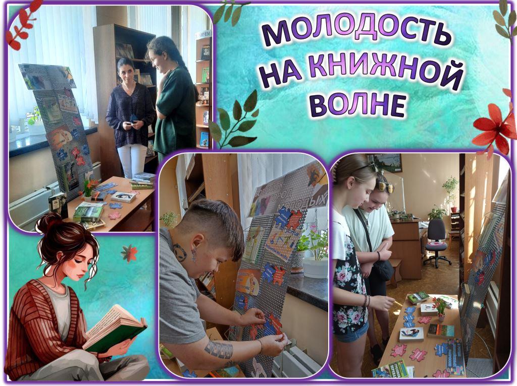 К Международному дню молодёжи в городской библиотеке им. А.С.Пушкина был организован молодёжный меридиан «Молодость на книжной волне». Для молодых читателей была оформлена выставка-импульс «Бобруйск – город молодых», на которой предложены к прочтению книги из фонда библиотеки в различных жанрах. Библиотекарь познакомила читателей с литературой, которая пользуются успехом у современной молодёжи родного города. Обзор литературы был направлен на привлечение молодёжи к культурному досугу, чтению и самообразованию. Рейтинг молодёжных предпочтений отразился в виртуальном хит-параде «Читающая молодёжь рекомендует». Интерактивной частью мероприятия стала интеллектуальная игра «Молодёжный пазл», где молодые люди проявили свои знания в области белорусской, русской и зарубежной литературы, подбирая цитаты из произведения к его названию. Современная жизнь молодежи насыщена событиями – учеба, общение с друзьями, Интернет. Однако, как это стало видно из проведения мероприятия, все это не мешает молодым людям интересоваться художественной литературой и своим родным краем.