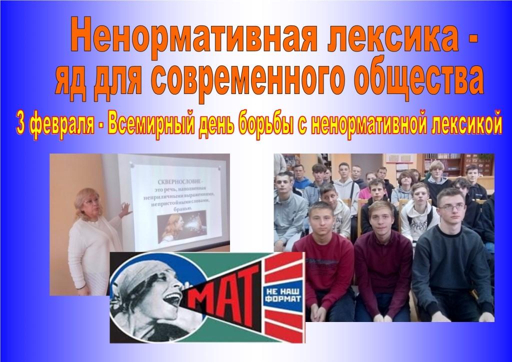 В читальном зале городской библиотеки № 16 прошел тематический час «Ненормативная лексика – яд для современного общества», посвященный Всемирному дню борьбы с ненормативной лексикой, на который были приглашены учащиеся УО «БГИСК».
