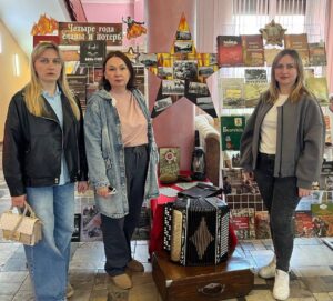 17 апреля в рамках проведения областного методического семинара «Актуальные вопросы организации киновидеообслуживания населения в регионе» и премьерного показа документальной кинодилогии режиссера Александра Анисимова о геноциде белорусского народа «Лагеря смерти» учреждение культуры «Централизованная библиотечная система г. Бобруйска» представила вниманию гостей библиотечную экспозицию «Четыре года славы и потерь». На библиотечной экспозиции размещались книги и наглядные материалы, раскрывающие основные этапы истории Великой Отечественной войны, все тяготы и трудности военного времени, материалы о героическом подвиге нашего народа. Также можно было увидеть серию книг о геноциде белорусского народа в концлагерях, о сожженных деревнях.