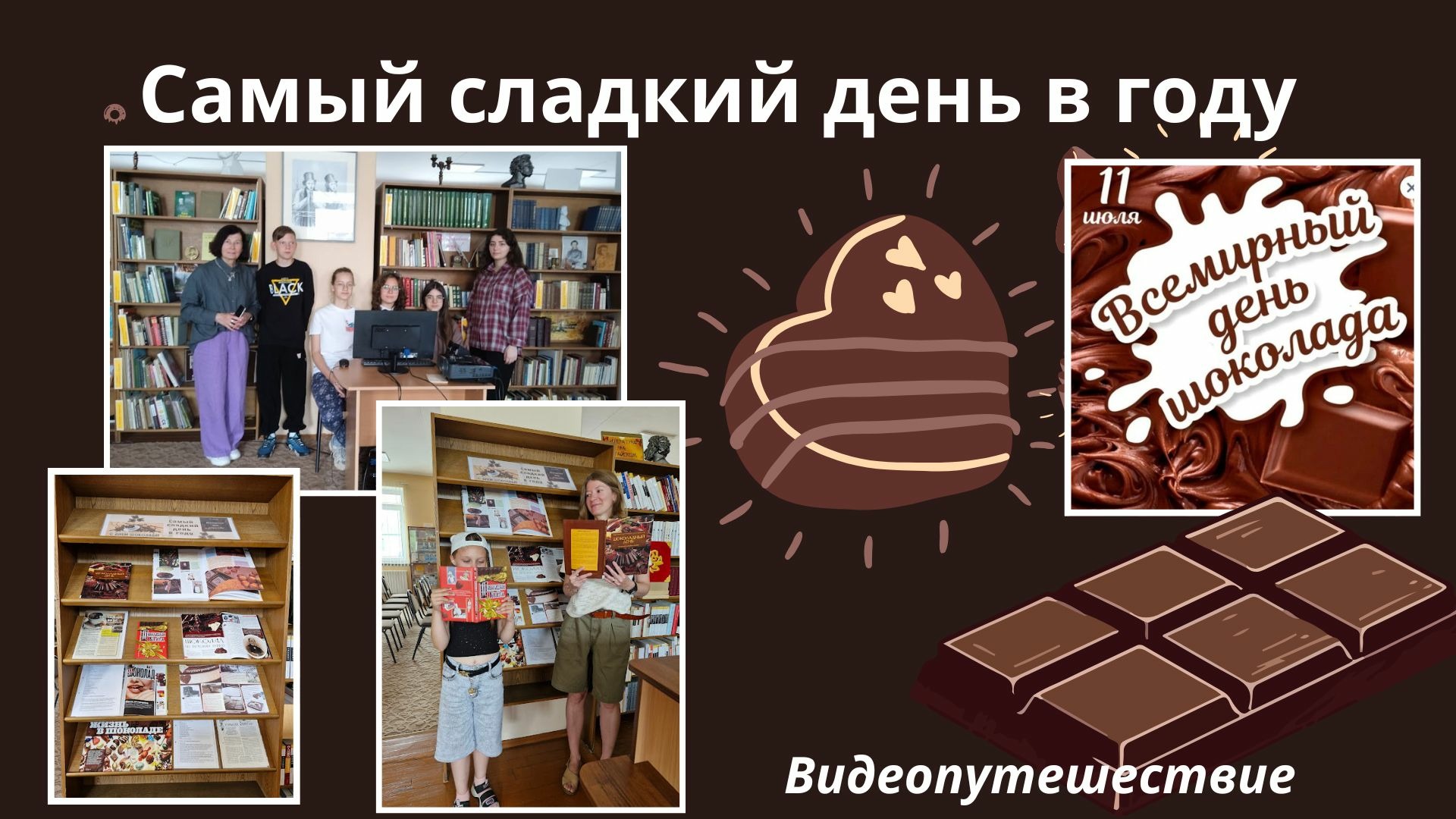 День шоколада стал отличной возможностью исследовать мир шоколада — от традиционных рецептов до инновационных подходов в производстве и подаче этого любимого лакомства. В городской библиотеке им. А.С.Пушкина было проведено видеопутешествие «Самый сладкий день в году», приуроченное Дню шоколада, которое стало не только эстетически привлекательным мероприятием, но и полезным ресурсом для всех, кто интересуется историей и современностью шоколадного дела. Фильм продемонстрировал, как традиции и инновации могут сочетаться в одном кадре, а глубокие рассказы экспертов дополняли визуальную составляющую, делая материал насыщенным и запоминающимся.