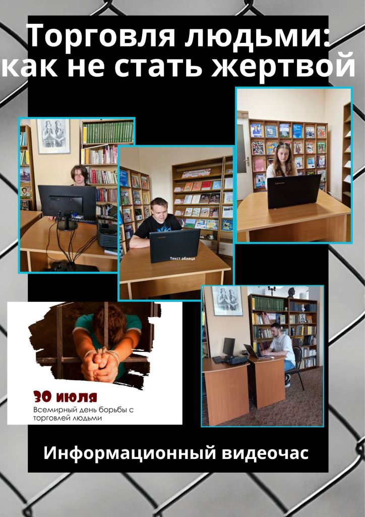 Всемирный день борьбы с торговлей людьми, отмечаемый ежегодно 30 июля, был провозглашен Генеральной Ассамблеей ООН в резолюции  в 2013 году. Торговля людьми является серьезной социальной проблемой, которая затрагивает все страны мира – и экономически развитые, и государства, переживающие переходный политический и экономический период. В городской библиотеке им. А. С. Пушкина был проведен информационный видеочас «Торговля людьми: как не стать жертвой».