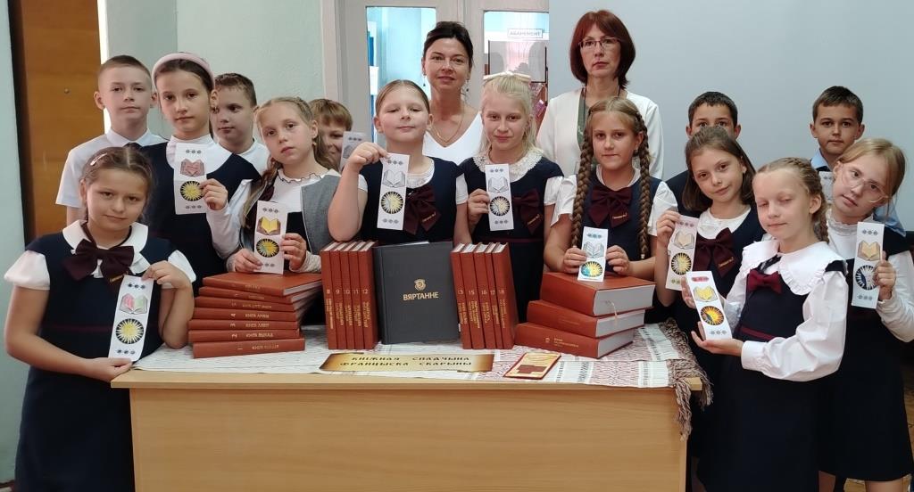 У другой часцы мерапрыемства вучні склалі пазлы з выявай Скарыны і размалявалі закладку з яго выдавецкім гербам пад назвай “сонца маладзіковае”.