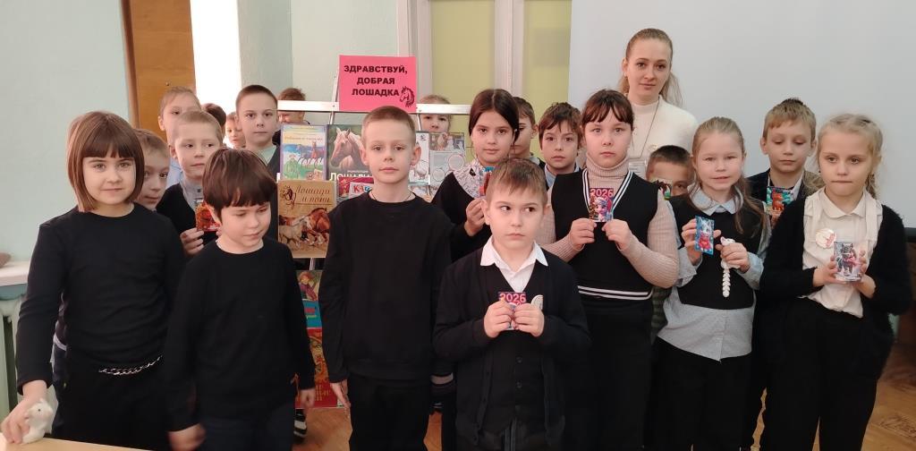 В завершение мероприятия ребята познакомились с выставкой «Здравствуй, добрая лошадка», на которой были представлены энциклопедии и художественные произведения о лошадях. Все участники мероприятия получили маленькие сувениры с изображением символа года на память.