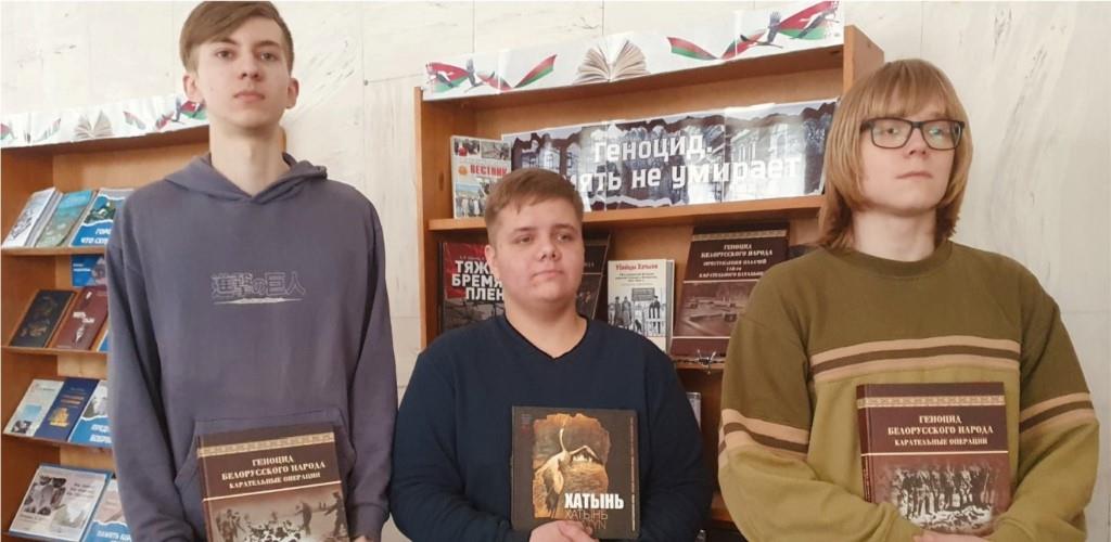 20 марта в центральной городской библиотеке им. М.Горького прошла беседа-реквием «Хатынь: символ вечной памяти и скорби», посвященная годовщине трагической гибели жителей Хатыни, уничтоженных немецко-фашистскими захватчиками. На мероприятие были приглашены учащиеся 1 курса УО «Бобруйский государственный лесотехнический колледж». Библиотекарь познакомила ребят с трагическими событиями, которые произошли на белорусской земле 22 марта 1943 года, рассказала историю создания Государственного мемориального комплекса «Хатынь» в память белорусских деревень, уничтоженных немецко-фашистскими оккупантами. Мероприятие сопровождалось просмотром видео фильма «Хатынь – конвейер смерти» и знакомством с литературой по геноциду белорусского народа. Сколько бы лет не прошло со дня Хатынской трагедии, память о ней всегда будет священна.