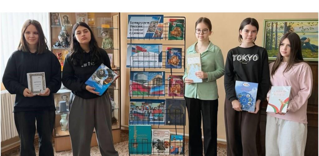 В городской библиотеке им. А.С. Пушкина ко Дню единения народов Беларуси и России для учащихся УО «Бобруйский государственный технологический колледж» был проведён информационный час «Один народ – две страны». Библиотекарь познакомила присутствующих с историей становления союзных отношений между двумя государствами, его ролью в сохранении мира и в жизни каждой семьи. Отдельное внимание было уделено ключевым этапам двустороннего сотрудничества, культурному наследию, традициям гостеприимства и братства, а также принципам добрососедства. Ребята активно отвечали на вопросы викторины «Что ты знаешь?», разбирали фото-карточки «Исторические карточки», играли в игру «Собери историю». В завершение мероприятия прошёл обзор книг о дружбе народов Беларуси и России, а также историческом наследии, представленных на тематической книжной выставке «Беларусь и Россия в союзе едином». Учащиеся сделали вывод о важности укрепления партнерских связей и уважительного отношения к истории, которая объединяет наши общества.