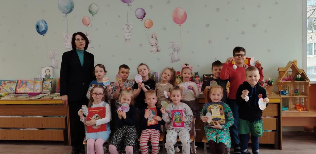 Для воспитанников старшей группы ГУО «Ясли-сад №44 г. Бобруйска» сотрудники библиотеки провели православный час «Пасхальное чудо». Дети познакомились с главными символами и традициями празднования этого праздника, узнали о различных техниках украшения пасхальных яиц. Сами ребята рассказали, как в их семьях проходит подготовка к празднованию Пасхи. Также дети поиграли в пасхальную игру «Бег с яйцом», разукрасили бумажные пасхальные яйца, познакомились с детскими книгами о празднике Христова Воскресения.