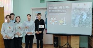 В рамках проекта РОО «Белая Русь» «Бессмертная слава Великой Победы» в городской библиотеке № 8 им. Евфросинии Полоцкой для учеников 7 «А» класса ГУО «Средняя школа № 18 г. Бобруйска» состоялся патриотический час «Память огненных лет». Ребята познакомились с электронной презентацией, подготовленной РОО «Белая Русь», которая содержит информацию о причинах начала Великой Отечественной войны, трех основных этапах войны, оккупации Беларуси немецко-фашистскими захватчиками, партизанском движении, развернувшемся на территории нашей страны, Победе советского народа и восстановлении разрушенного народного хозяйства в послевоенные годы.