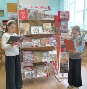Библиотекарь познакомила присутствующих с историей создания песен «Священная война», «На безымянной высоте», «Огонёк», «Землянка» и других. Школьники узнали, что песни, созданные в час суровых испытаний, пели не только воины. Их пел весь наш народ, черпая в них оптимизм, душевные силы. Слушая записи военных песен, никто из присутствующих не остался равнодушным.