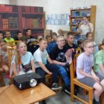 Бібліятэкар правяла для прысутных агляд-знаёмства “Знайдзі хвілінку – прачытай навінку”, на старонках якіх дзяўчынкі і хлопчыкі са школьнага лагера знайшлі для сябе шмат цікавага, павучальнага і пазнавальнага. Юныя чытачы выцягвалі задані і адказвалі на беларускай мове. Патрэбна было закончыць прыказку, перакласці на беларускую мову словы, пазнаць казачнага героя і казку, назваць беларускіх пісьменнікаў, прачытаць верш на беларускай мове, адгадаць загадку і інш. А напрыканцы была паказана тэатралізаваная беларуская народная казка ” Каза- манюка”.