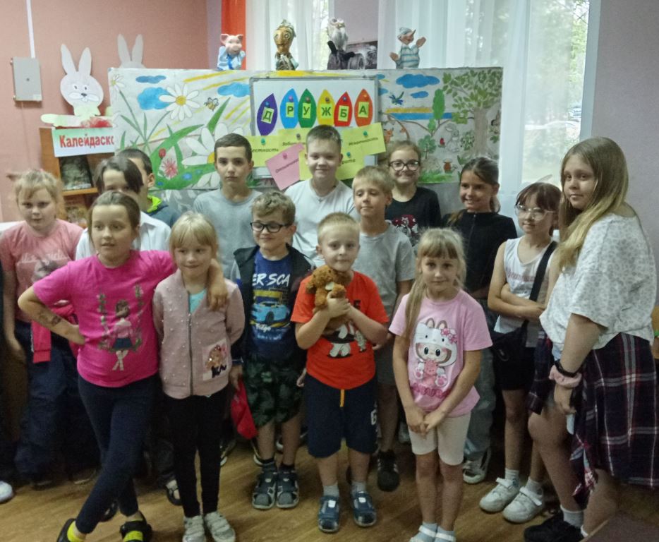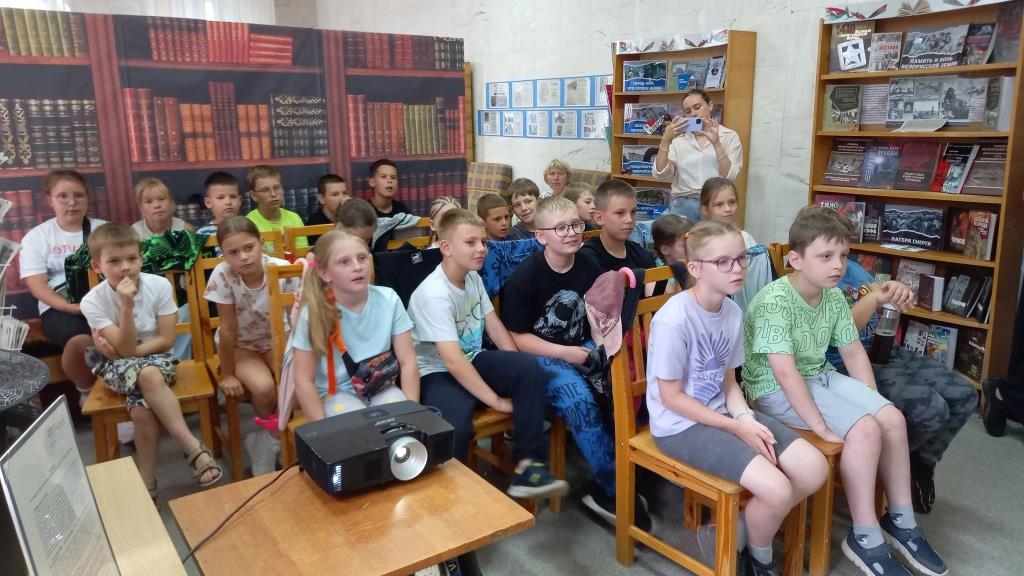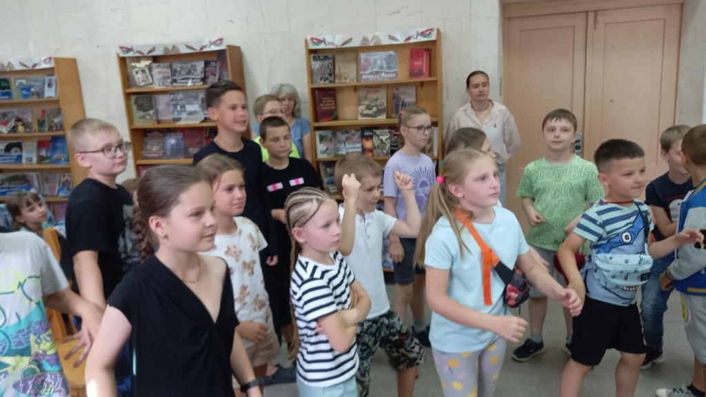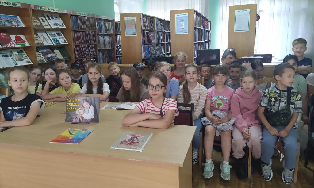Бібліятэкар правяла для прысутных агляд-знаёмства “Знайдзі хвілінку – прачытай навінку”, на старонках якіх дзяўчынкі і хлопчыкі са школьнага лагера знайшлі для сябе шмат цікавага, павучальнага і пазнавальнага. Юныя чытачы выцягвалі задані і адказвалі на беларускай мове. Патрэбна было закончыць прыказку, перакласці на беларускую мову словы, пазнаць казачнага героя і казку, назваць беларускіх пісьменнікаў, прачытаць верш на беларускай мове, адгадаць загадку і інш. А напрыканцы была паказана тэатралізаваная беларуская народная казка ” Каза- манюка”.