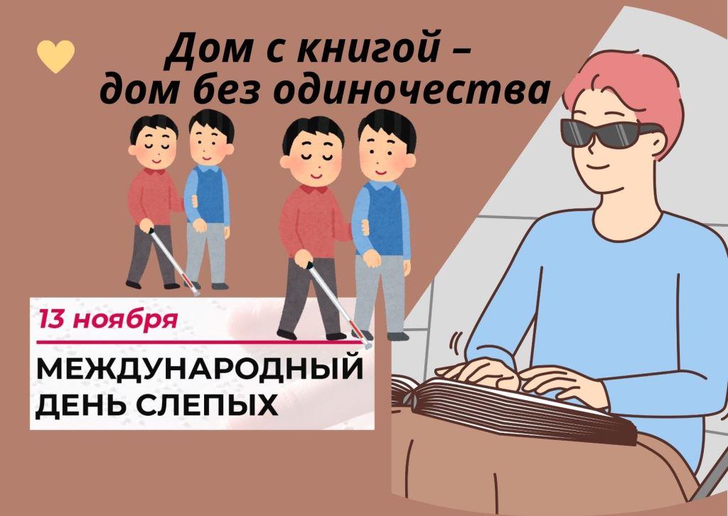 13 ноября отмечается Международный день слепых — дата, призванная привлечь внимание к проблемам людей с нарушениями зрения и продемонстрировать возможности для их интеграции в общество.  В городской библиотеке им. А.С.Пушкина была проведена  выставка-обзор «Дом с книгой – дом без одиночества». Было  рассказано  о возникновении  Международного дня слепых и  истории создания  рельефного шрифта Луи Брайля, а так же  представлены известные личности, потерявшие зрение, но добившиеся значительных успехов, такие как французский педагог Валентин Гаюи, поэт Эдуард Асадов, музыкант Стиви Уандер и др. На выставке были отображены    книги в формате Брайля, аудиокниги, литература с крупным шрифтом. Пользователи смогли ознакомиться с новинками и классическими произведениями. Выставка-обзор стала важным мероприятием для обсуждения вопросов доступности литературы и информации для людей с ограничениями по зрению.
