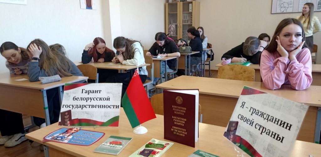 15 марта в нашей стране отмечается один из главных государственных праздников – День Конституции Республики Беларусь. В преддверии праздника для учащихся УО «Бобруйский государственный технологический колледж» был проведен правовой урок «Конституция – наш общий ориентир». В ходе мероприятия учащиеся узнали об истории принятия Конституции Республики Беларусь и ее изменениях, получили целостное представление о Конституции как фундаменте правовой системы нашей страны, а также поняли важность соблюдения законов для стабильности и развития общества. Для закрепления полученных знаний, учащиеся ответили на вопросы правовой разминки, поучаствовали в интерактивной викторине «Познаем Конституцию вместе», приняли участие в игре «Конституция в вопросах и ответах», просмотрели видеофрагмент о достопримечательностях Беларуси «Все чудеса твоей страны». В заключение прозвучали слова о том, что Конституция гарантирует каждому гражданину свободы и права, необходимые для созидательного труда, достойной жизни и гармоничного всестороннего развития личности. Задача каждого из нас – соблюдать конституционные обязанности, поддерживать и сохранять ценности, которые установлены Основным Законом страны.