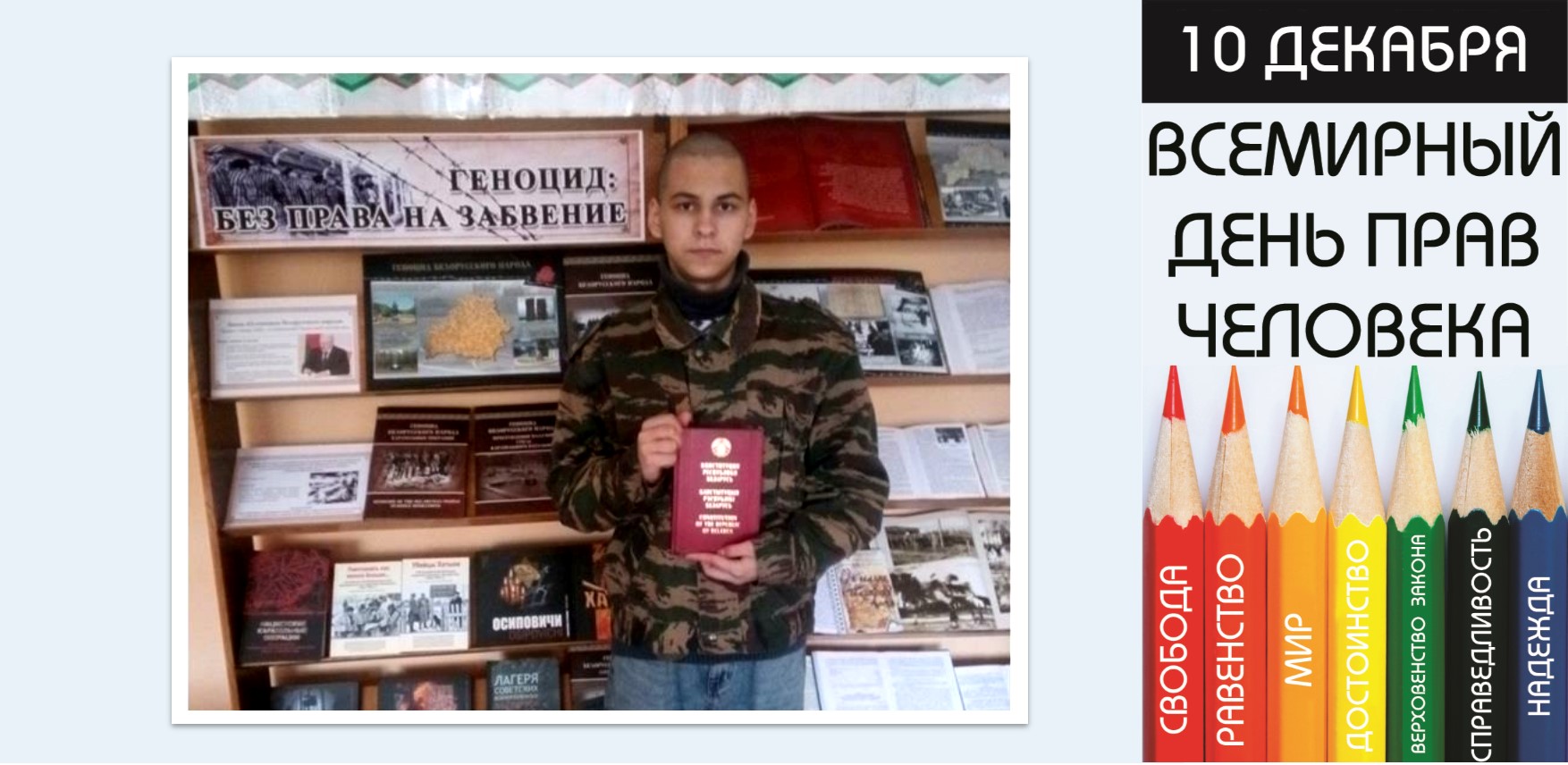 11 декабря в городской библиотеке №16 в рамках проекта для молодёжи «Твой путь в жизни» прошел информационный обзор «Права человека – через библиотеку». На мероприятии присутствовали учащиеся УО «Бобруйский государственный индустриально-строительный колледж». В ходе встречи прозвучала информация об истории появления Всеобщей декларации прав человека и соответствующих законодательных актах Республики Беларусь. Присутствующие ознакомились с основными статьями Конституции Республики Беларусь, касающимися прав и свобод граждан. Также прозвучала информация о необходимости соблюдения гражданских обязанностей каждым жителем страны. Библиотекарь обратила внимание молодых людей на изменения в белорусском законодательстве об ужесточении ответственности по некоторым вопросам, и призвала к законопослушному поведению в повседневной жизни.