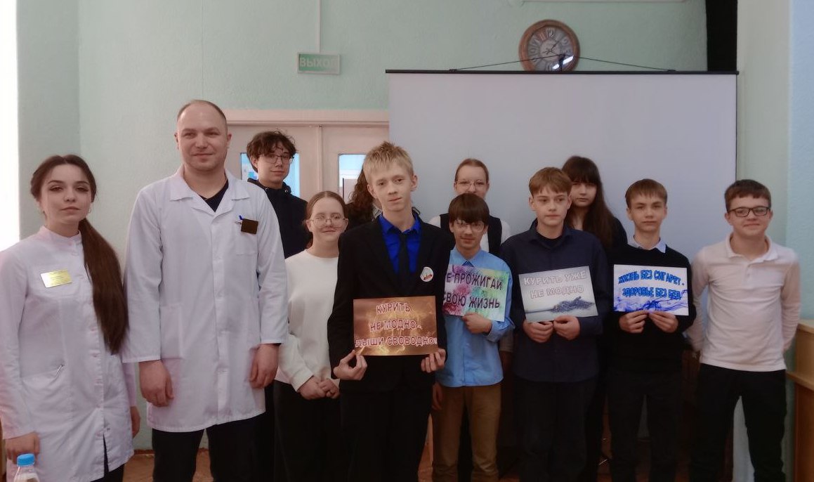 В городской библиотеке № 8 имени Евфросинии Полоцкой для учеников 7 класса ГУО «Средняя школа № 18 г. Бобруйска» в рамках проекта «Академия выживания» состоялся профилактический час «Всем ясно – курение опасно». На мероприятие были приглашены медицинские работники УЗ «Бобруйская городская поликлиника № 3»: помощник врача Филипченко Анна Олеговна и помощник врача АПП Дятел Филипп Сергеевич. Ребята вместе с медицинскими работниками вспоминали основные правила здорового образа жизни. Анна Олеговна заострила внимание школьников на увлечении молодыми людьми электронными сигаретами. Этот новый тренд также несёт реальную угрозу здоровью. Присутствующие узнали о страшных последствиях курения, о том, что курящий человек приносит вред не только себе, но и окружающим. Познакомились с книжно-иллюстративной выставкой «Брось курить – вдохни свободно».