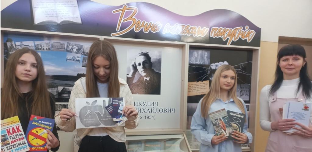 Важным направлением работы в библиотеке является профилактика наркомании и пропаганда здорового образа жизни среди подрастающего поколения. Для учащихся 8 «А» класса ГУО « СШ№ 10 г. Бобруйска» был проведён час-предупреждение «У опасной черты». Мероприятие началось с вступительного слова библиотекаря о вреде наркомании, о пагубном воздействии на здоровье и жизнь человека, о том, как не попасться на « крючок» и не стать наркозависимым. В ходе беседы были затронуты самые острые темы: разрушительное действие наркотиков на организм подростка, причины вовлечения молодёжи в зависимость, а также правовые последствия таких пристрастий. Особое внимание было уделено развенчиванию мифов о « лёгких» и «безвредных» наркотиках. На мероприятии демонстрировались отрывки из документального фильма «Точка невозврата». Дети активно обсуждали предложенные ситуации и искали альтернативные способы решения проблем. Также вниманию учащихся была представлена книжная выставка «Твой выбор – твоя жизнь». Ребята познакомились с литературой о спорте, активном досуге и преодолении вредных привычек. В конце встречи был сформулирован главный вывод – жизнь без наркотиков возможна, она очень интересна! И каждый из ребят ответственен за свою жизнь и здоровье!