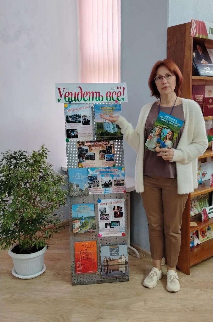 В городской библиотеке № 8 имени Евфросинии Полоцкой в рамках месяца событийного туризма была проведена акция «Увидеть всё!» Посетители библиотеки узнали как о самых масштабных международных фестивалях и праздниках, проводимых  в нашей стране, так и об аутентичных локальных, но не менее интересных. Рассказ об этих мероприятиях сопровождался красочными коллажами с фотографиями сотрудников и читателей библиотеки, которые в свое время побывали на различных мероприятиях и таким образом были участниками событийного туризма: «Славянский базар в Витебске», «Джазовые вечера в Минске», «Музыкальные вечера в Мирском замке», «Рыцарский фест в Мирском замке», региональный праздник “Вераснёўскі фэст. Палац у Жылічах” (Кировский район Могилевская область), Всебелорусский православный крестный ход «Жировичи-Минск». Пользователи библиотеки вспомнили фестивали, которые проходят в родном городе: международный фестиваль народного творчества «Венок дружбы», международный пленэр по керамике «АРТ-Жыжаль», республиканский театральный фестиваль национальной драматургии им. В.И.Дунина-Марцинкевича.