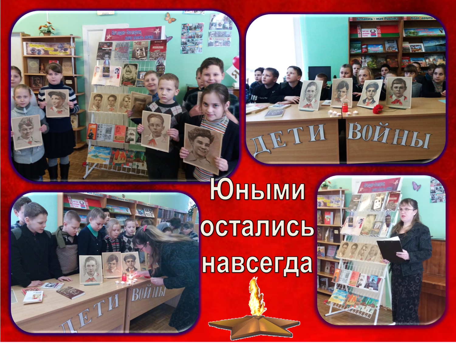 В ДБ №5 целью формирования у школьников высоких моральных качеств прошёл урок памяти “Юными остались навсегда”. Ведущие напомнили о том, что во всём мире 8 февраля отмечается день юного героя-антифашиста. Дата учреждена в честь погибших 15-летнего француза Даниэля Фери и иракца Фадыла Джамаля, которые жили в разных странах, говорили на разных языках, но боролись и погибли за освобождение своих стран. Из слайд-презентации “Маленькие герои большой войны” школьники узнали о подвиге своих ровесников, погибших на полях сражений. Это Володя Щербацевич и Люся Герасименко, Марат Казей и Валя Котик, Лёня Голиков и Володя Дубинин, а также многие другие, прошедшие через горнило страшной войны и отдавшие свои жизни за Родину. Библиотечная выставка “Ваш подвиг бессмертен”, викторина “Никто не забыт, ничто не забыто” были посвящены всем, кто плечом к плечу со взрослыми сражался на фронтах. А минута молчания – колокол по погибшим, дань тем, кто взвалил на свои детские плечи недетскую ношу и предостережение о том, что это не должно повториться.