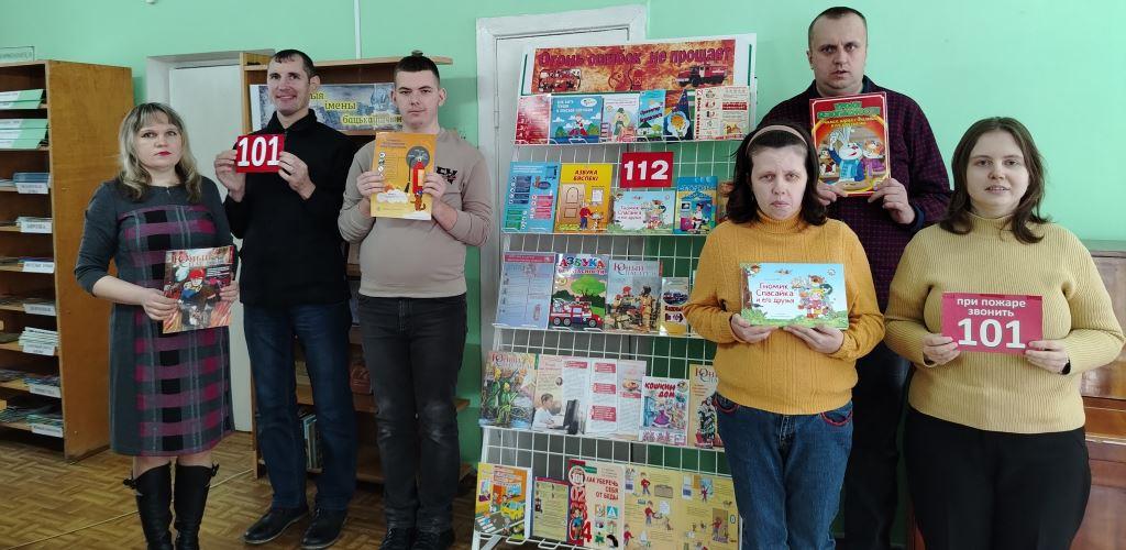 В детской библиотеке № 5 для подопечных отделения социальной реабилитации, абилитации инвалидов учреждения «Территориальный центр социального обслуживания населения Первомайского района г. Бобруйска» было проведено интерактивное занятие «При пожаре не сидим, набираем 101».