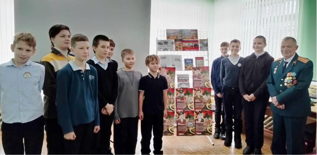 В преддверии Дня памяти воинов-интернационалистов в детской библиотеке № 5 для учеников 7 «Б» класса ГУО «Средняя школа № 16 г. Бобруйска» при поддержке Первомайской районной организации г. Бобруйска Белорусского общественного объединения ветеранов состоялся информационно-патриотический урок «Место подвига — Афганистан». Приглашенным гостем мероприятия стал по-настоящему героический человек — участник боевых действий Павел Геннадьевич Клемин.