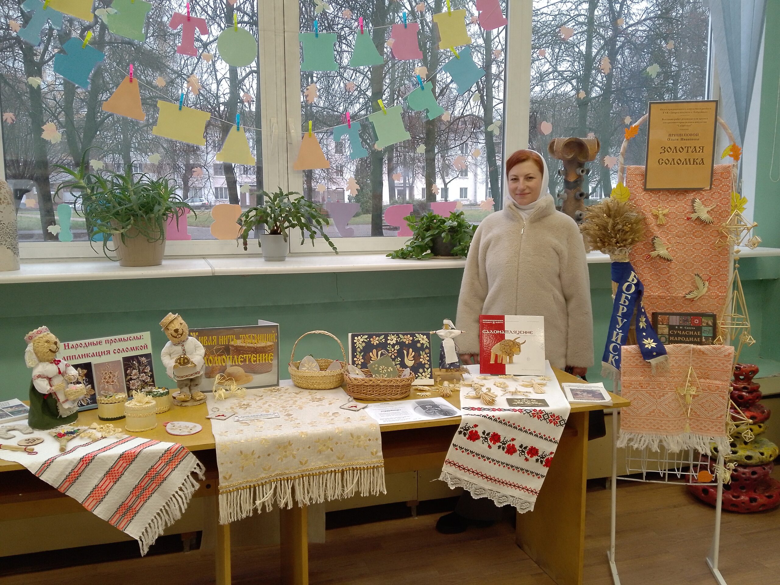 В центральной детской библиотеке им. А.П.Гайдара организована выставка творческих работ руководителя кружка декоративно-прикладного искусства “Скарбніца” отдела традиционного искусства и ремёсел ГУК «Дворец искусств г. Бобруйска» Ольги Прищеповой «Золотая соломка”.