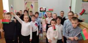 В городской библиотеке № 8 им. Евфросинии Полоцкой для учеников 2 «А» класса ГУО «Средняя школа № 18 г. Бобруйска» прошел патриотический час «Беларусь и Россия единством сильны», приуроченный ко Дню единения народов Беларуси и России. Ребята познакомились с историей праздника, поговорили о государственных символах, праздничных днях, народных обычаях двух стран, а также выявили общее и различие в белорусской и русской культуре. Дети с удовольствием разгадывали разнообразные викторины, связанные с народными сказками, неофициальными символами, языками двух стран.