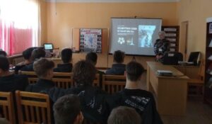 В рамках реализации проекта РОО «Белая Русь» «Бессмертная слава Великой Победы» в городской библиотеке №16 состоялся диалог «Память беречь молодым». Для молодежи коллектива библиотеки и учреждения образования “Бобруйский государственный индустриально-строительный колледж” со вступительным словом выступила председатель первичной организации “Белая Русь” Кирилюк Екатерина Анатольевна. Заведующий библиотекой №16 Назарова Елена Леонидовна познакомила молодых людей с материалами презентации, разработанной РОО «Белая Русь», подробно остановилась на освободительной операции «Багратион». Используя материалы интерактивного стенда, учащиеся углубили свои знания об освобождении Бобруйска. Во второй половине мероприятия они не только поделились военной историей своей семьи, но и обсудили роль молодёжи в деле сохранения исторической памяти. В конце мероприятия присутствующие пришли к выводу: свою историю мы должны знать, уважительно относиться к ней, участвовать в наведении и сохранении порядка на местах воинских соединений, принимать активное участие в работе поисковых отрядов, военно-патриотических клубов, реализации молодёжных патриотических проектов.